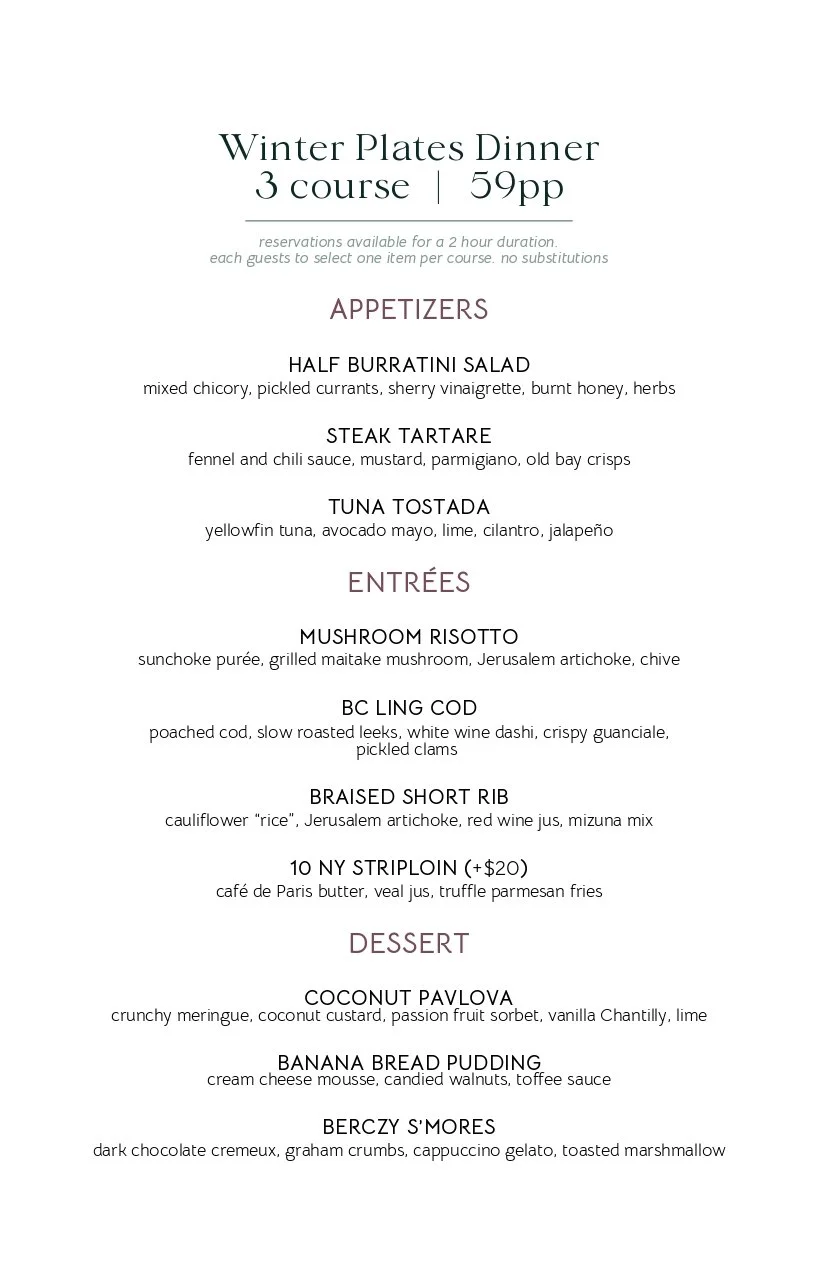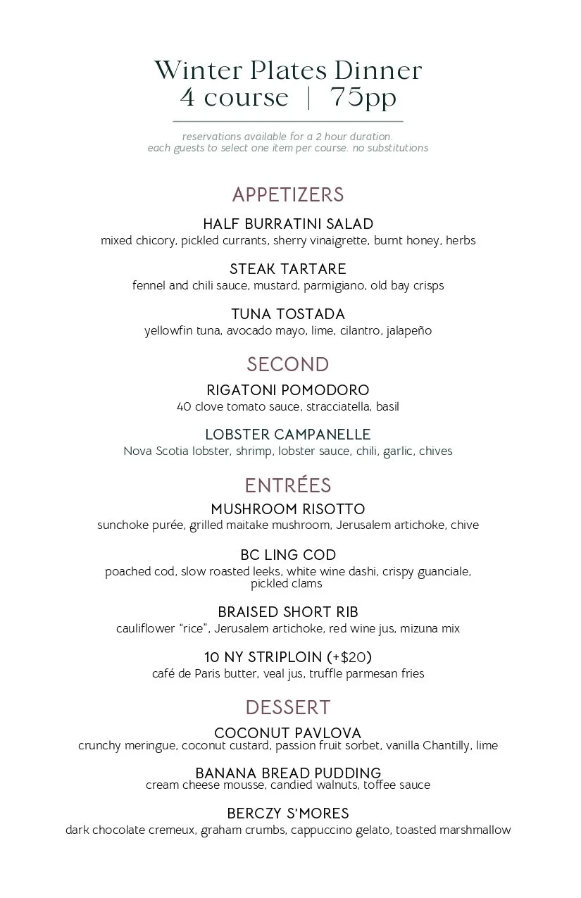 The Berczy Tavern unveils our yearly Winter Plates. A limited-time signature menu designed for those who appreciate the simple art of food.